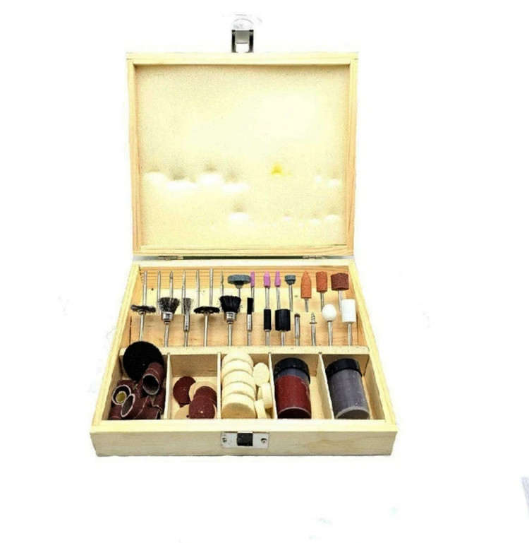 سایر توضیحات - پولیش ریز و درشت - صفحه برش - ساب - سنباده صفحه ای - سنباده رولی - انگشتی فلزی - انگشتی سنگی - روغن - فرچه پلاستیکی و سیمی ✔️ به همراه کیف حمل