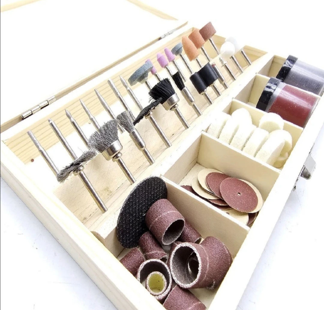 سایر توضیحات - پولیش ریز و درشت - صفحه برش - ساب - سنباده صفحه ای - سنباده رولی - انگشتی فلزی - انگشتی سنگی - روغن - فرچه پلاستیکی و سیمی ✔️ به همراه کیف حمل