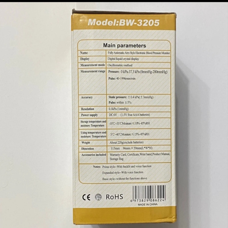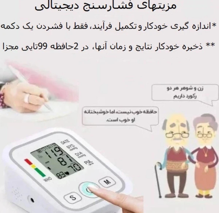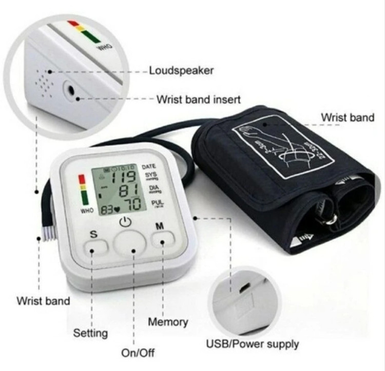 این دستگاه برای فشار خون و ضربان قلب استفاده می شود. دستگاه دارای یک صفحه نمایش LCD است که فشار خون سیستولیک و دیاستولیک و همچنین ضربان قلب را نمایش می دهدقابلیت در بهترین حالت اتصال مستقیم با کابل شارژ موبایلUSB به یک شارژر موبایل خوب