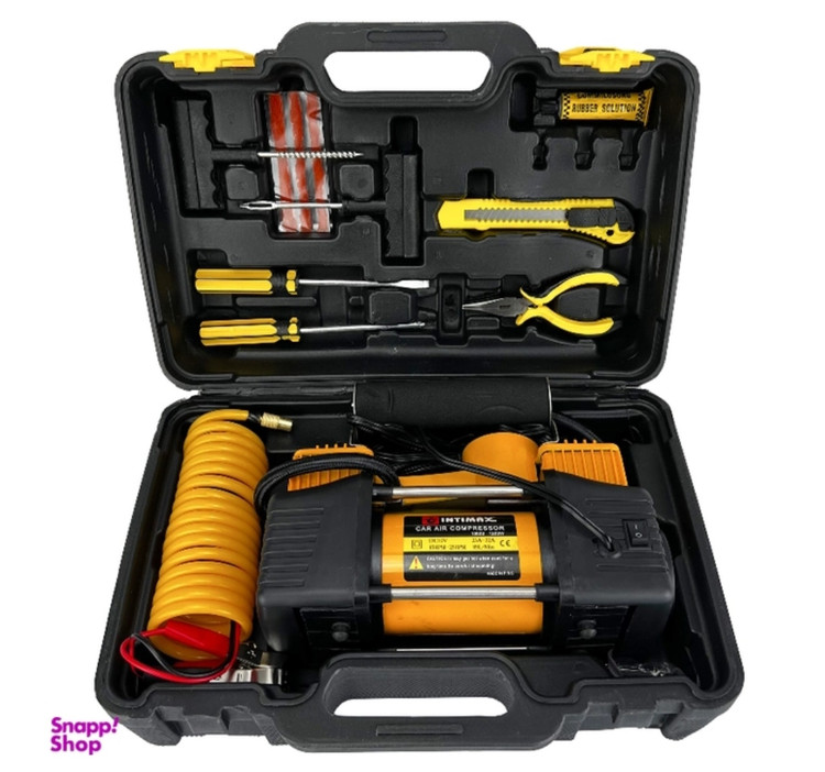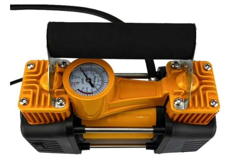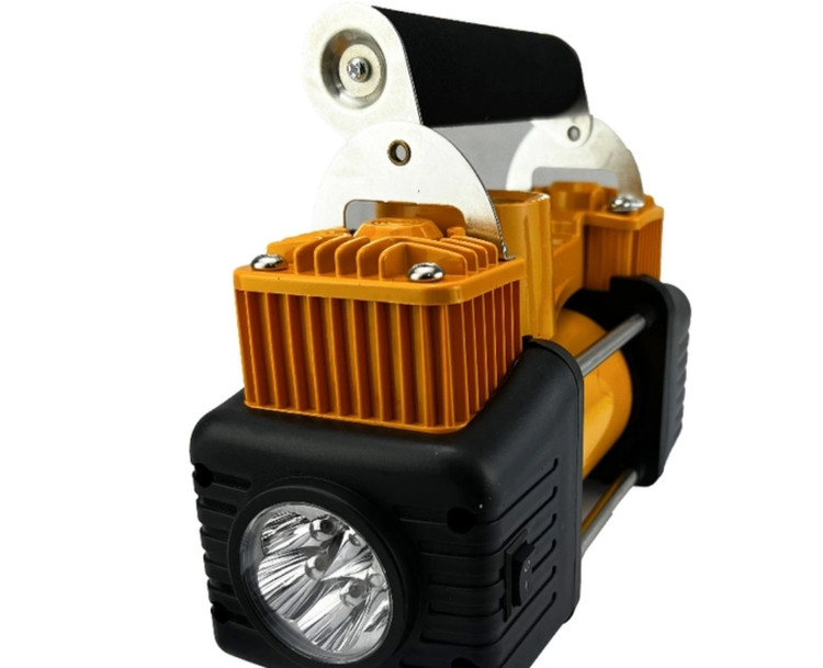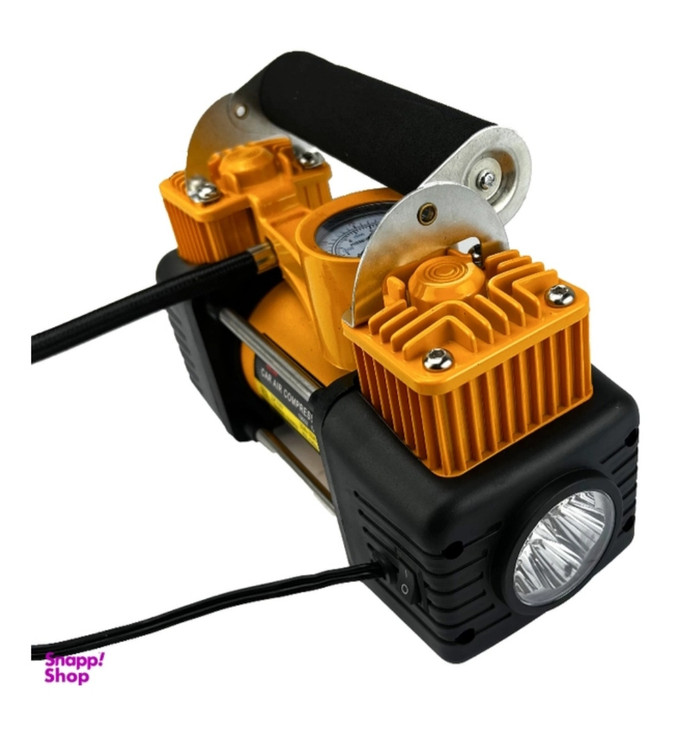۱۲ ولت ۱۲۰۰وات ۱۵۰-۲۵۰فشار هوا چراغ دار دبی هوا : 85 لیتر در دقیقه دو سیلندر دارای کابل 2 متری جهت اتصال به باتری خودرو اقلام همراه : دارای 3 عدد نازل همراه, کیف کامل به همراه ست پنچر گیری و پیچ گوشتی و انبردست و کاتر