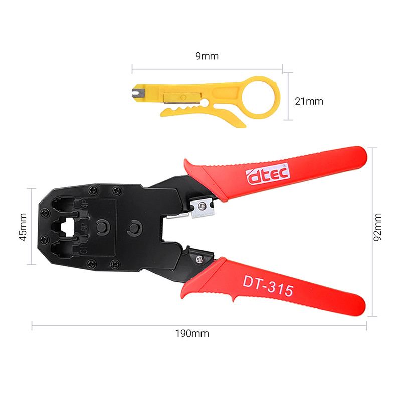آچار سوکت زن فوق از دیگر محصولات شرکت DTEC میباشد. سوکت زن فوق قابلیت سوکت زدن سوکتهای 4 پین , 6 پین , 8 پین و یا به عبارتی Rj11 برای تلفن و Rj45 جهت شبکه و Rj12 را دارد. بدنه آن مجهز به سیم لخت کن جهت سهولت و سرعت در کار میباشد.همچنین در پک آن یک عدد استریپر است که دارای شیارهای مختلف برای روکش برداری کابلهای متناسب با آن شیارها میباشد. جنس فک آن از نوع فولادی و دسته آن از روکش پلاستیکی شیک و مقاوم برخوردار است
