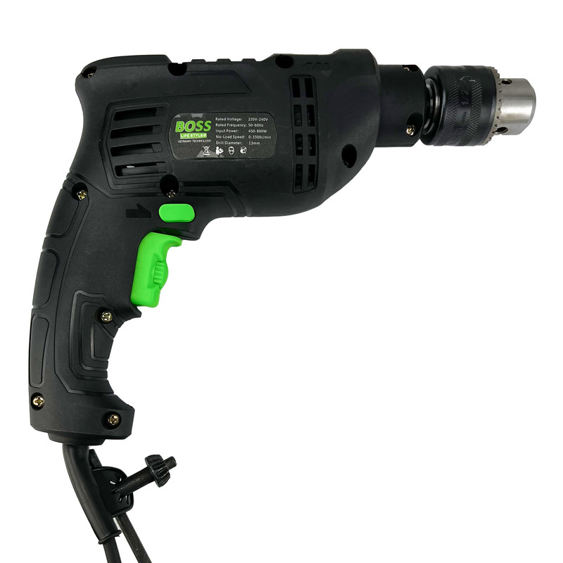 مثل همهی دستگاههای الکتریکی دیگر، موتور را میتوان مهمترین قسمت یک دریل معرفی کرد. این بخش تعیینکنندهی قدرت و سرعت یک دریل است که دریل چکشی باس مدل BS-1305 با داشتن توانی معادل 450 ~ 800 وات، امکان فراهم کردن دور موتوری معادل 3300 دور در دقیقه درحالت آزاد و امکان دریل کاری چکشی قدرتی و ایجاد حفره در انواع سطح چوب، آهن و بتن گزینه مناسبی برای دریل در رنج قدرتی متوسط به بالا میباشد. همچنین به دلیل داشتن قابلیت چپگرد-راستگرد و همچنین سه نظام آچارخور بادوام، دریل چکشی 450~ 800 وات BOSS یکی از اعضای قدرتمند و ماندگار مجموعه ابزار شما خواهد بود. با طراحی ارگونومیک آن، خستگی ناشی از کار با آن کاهش یافته و بدنه ضدلغزش آن ایمنی کارشما را تضمین خواهد کرد.