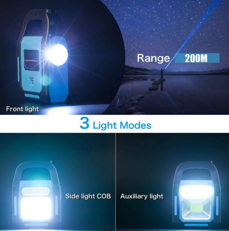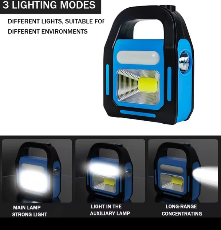 این محصول یک چراغ قوه و لامپ چندکاره با ویژگیهای زیر است: 1. منبع تغذیه دوگانه (Solar + USB): • این دستگاه قابلیت شارژ از طریق نور خورشید (پنل خورشیدی) و همچنین از طریق درگاه USB را دارد. • ایدهآل برای مواقع اضطراری، کمپینگ و فضاهای بیرونی. 2. دارای سه حالت نوری مختلف: • نور قوی (Main Lamp Strong Light). • نور کمکی (Light in the Auxiliary Lamp). • نور متمرکز بلند (Long-Range Concentrating). 3. قابلیت شارژ موبایل و دستگاههای الکترونیکی: • از طریق پورت USB میتواند بهعنوان پاوربانک عمل کند. • مناسب برای شارژ موبایل، تبلت و سایر دستگاههای قابل شارژ. • توجه: کابل USB همراه فقط برای دستگاههای اندرویدی است. 4. طراحی سبک و قابل حمل: • دسته قابل حمل برای راحتی استفاده در سفر و کمپینگ. • طراحی مقاوم و بادوام برای شرایط سخت. این محصول برای استفاده در مواقع اضطراری، کمپینگ، یا سفرهای بیرونی که نیاز به روشنایی و شارژ دستگاه دارید، گزینهای عالی است.