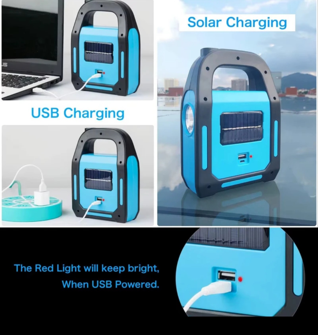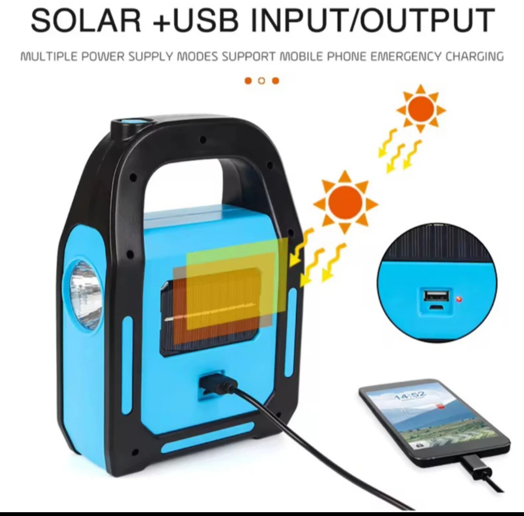 این محصول یک چراغ قوه و لامپ چندکاره با ویژگیهای زیر است: 1. منبع تغذیه دوگانه (Solar + USB): • این دستگاه قابلیت شارژ از طریق نور خورشید (پنل خورشیدی) و همچنین از طریق درگاه USB را دارد. • ایدهآل برای مواقع اضطراری، کمپینگ و فضاهای بیرونی. 2. دارای سه حالت نوری مختلف: • نور قوی (Main Lamp Strong Light). • نور کمکی (Light in the Auxiliary Lamp). • نور متمرکز بلند (Long-Range Concentrating). 3. قابلیت شارژ موبایل و دستگاههای الکترونیکی: • از طریق پورت USB میتواند بهعنوان پاوربانک عمل کند. • مناسب برای شارژ موبایل، تبلت و سایر دستگاههای قابل شارژ. • توجه: کابل USB همراه فقط برای دستگاههای اندرویدی است. 4. طراحی سبک و قابل حمل: • دسته قابل حمل برای راحتی استفاده در سفر و کمپینگ. • طراحی مقاوم و بادوام برای شرایط سخت. این محصول برای استفاده در مواقع اضطراری، کمپینگ، یا سفرهای بیرونی که نیاز به روشنایی و شارژ دستگاه دارید، گزینهای عالی است.