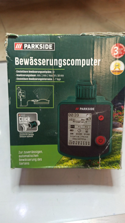 کامپیوتر آبیاری PARKSIDE با عملکرد حافظه ویژگی ها -برای آبیاری مطمئن و خودکار باغ -قابل برنامه ریزی تا 10 برنامه مستقل - برای تامین هدفمند و بهینه -زمان آبیاری و فواصل آبیاری به صورت جداگانه قابل تنظیم -دارای عملکرد حافظه - آخرین تنظیمات انتخاب شده ذخیره می شود عملکرد باتری با نشانگر تغییر -حذف دستی آب با لمس یک دکمه -نصب آسان و عملکرد بصری توسط خود exexplanMenu با 14 زبان قابل تنظیم -محفظه ضد پاشش (IPX4) -مقاوم در برابر اشعه ماوراء بنفش -برای شیرهای استاندارد با نخ 33.3 میلی متری (G1) ") - شامل آداپتور به رزوه 26.5 میلی متری (G¾) - سیستم کلیک پارک ساید: اتصال شیلنگ مناسب برای سیستم های شلنگ استاندارد - همراه با لوازم جانبی ایمنی کودک شامل: 1 قطعه اتصال شلنگ، 1 عدد آداپتور شیر 3. 3.3 میلی متر 26.5 میلی متر (G1 اینچ) تا G¾) اینچ)، 2 عدد باتری قلیایی با دوام طولانی. اطلاعات فنی: برنامه های آبیاری قابل تنظیم: 10. زمان آبیاری: حداقل. 1 دقیقه/حداکثر 9 ساعت و 59 دقیقه فواصل آبیاری قابل تنظیم: 1-7 روز. جنس: پلاستیک، سیلیکون. ابعاد: تقریبا 10.3 × 12.4 × 14.1 سانتی متر. «عکسهایی چهارم وبعد از آن از خود کالا است وضعییت بسته بندی مشابه
