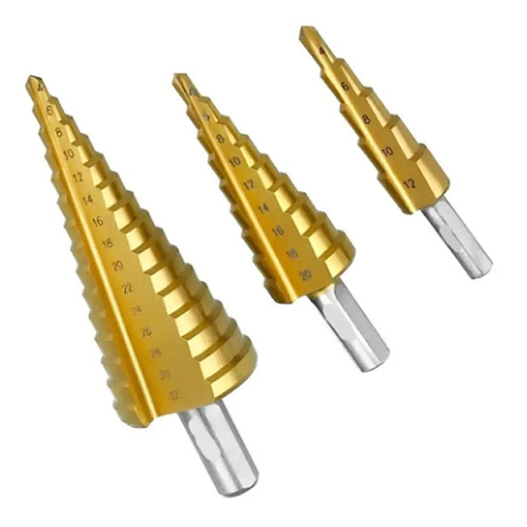مته کاجی 3 عددی اکبونس با کیفیت فوق العاده بالا ، دارای سه سایز مختلف : سایز 4 تا 12 میلیمتر ، سایز 4 تا 20 میلیمتر ، سایز 4 تا 32 میلیمتر می باشد . آلیاژ : تیتانیوم سخت می باشد . کاربرد : انواع چوب ، امدیاف ، پلاستیک ، پی وی سی ، پروفیل ، آهن ، استیل ، آلومینیوم ، برنج و غیره .... توضیحات : مته مخروطی یا مته پلهای یکی از مته های پر کاربرد برای سوراخ کاری ، فلزات، چوب و... است. این مته شکلی شبیه درخت کاج دارد و به همین علت به آن مته کاجی هم میگویند. روی این مته پلههایی وجود دارد که همان سایزبندی مته را نشان میدهد و از اندازه ک به زیاد درجه بندی شده است و در واقع کارایی چند مته با سایزهای مختلف را دارد. اعداد حکاکی شده روی مته نشان دهنده قطر سوراخ است. این محصول یک عدد مته 15 پلهای سایز 4 تا 32میلیمتر است که سوراخ های متعددی به قطر 4 تا 32 میلیمتر در کار ایجاد میکند این کالا از جنس فلز HSS بوده و برای سوراخ کردن انواع فلز استفاده خواهد شد. از ویژگی این محصول داشتن دنباله شش ضلعی در قسمت ساقه مته است که امکان استفاده در پیچ گوشتی های شارژی که فاقد سه نظام هستند را امکان پذیر میکند . کشور تولید کننده : چین