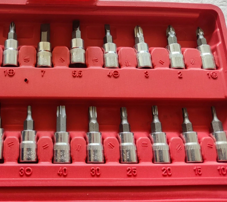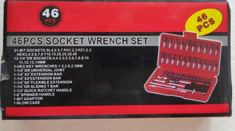 جعبه بکس 46 پارچه حرفه ای 🔵آلیاژ : فولاد کروم وانادیوم 🔴سایز درایو : 1/4 🔵استاندارد متریک 🔴دارای 13 عدد سری بکس درایو 1/4 🔵سایز بکس ها : 4 ، 4.5 ، 5 ، 5.5 ، 6 ، 7 ، 8 ، 9 ، 10 ، 11 ، 12 ، 13 و 14 میلیمتر 🔴دارای 21 عدد سری بکس پیچگوشتی شامل: 🔵3 عدد سری پیچگوشتی چهارسو خاردار در سایزهای PZ1 ،PZ2 و PZ3 🔴3 عدد سری دوسو در سایزهای SL4 ،SL5.5 و SL7 🔵3 عدد سری چهارسو در سایزهای PH1 ،PH2 و PH3 🔴6 عدد سری آلن ستارهای در سایزهای T10 ،T15 ،T20 ،T25 ،T30 ،T40 🔵6 عدد سری آلن در سایزهای HEX7 ،HEX6 ،HEX5 ،HEX4 ،HEX3 ،HEX8 🔴دارای 1 عدد آچار جغجغه ایی به طول 15/5 سانتیمتر با درایو 1/4 اینچ 🔵دارای 1 عدد دسته ی پیچگوشتی به طول 15 سانتیمتر با درایو 1/4 اینچ 🔴دارای 2 عدد افزایندهی طول در سایزهای 10 و 5 سانتیمتر 🔵دارای 1 عدد افزایندهی طول فنری 14.5 سانتیمتری 🔴دارای 1 عدد آچار T به طول 11.5 سانتیمتر 🔵دارای 1 عدد سری آلن 🔴دارای 3 عدد آچار آلن با طول 4.5 سانتیمتر 🔵دارای 1 عدد لقلقه به طول 4 سانتیمتر 🔴دارای باکس ضدضربه BMC