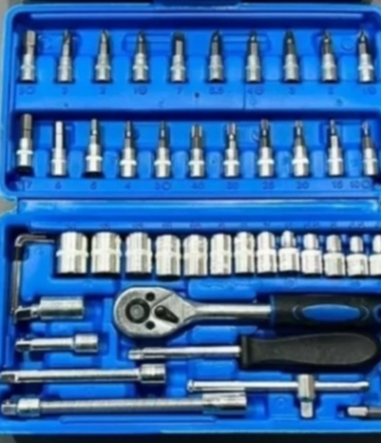 جعبه بکس 46 پارچه حرفه ای 🔵آلیاژ : فولاد کروم وانادیوم 🔴سایز درایو : 1/4 🔵استاندارد متریک 🔴دارای 13 عدد سری بکس درایو 1/4 🔵سایز بکس ها : 4 ، 4.5 ، 5 ، 5.5 ، 6 ، 7 ، 8 ، 9 ، 10 ، 11 ، 12 ، 13 و 14 میلیمتر 🔴دارای 21 عدد سری بکس پیچگوشتی شامل: 🔵3 عدد سری پیچگوشتی چهارسو خاردار در سایزهای PZ1 ،PZ2 و PZ3 🔴3 عدد سری دوسو در سایزهای SL4 ،SL5.5 و SL7 🔵3 عدد سری چهارسو در سایزهای PH1 ،PH2 و PH3 🔴6 عدد سری آلن ستارهای در سایزهای T10 ،T15 ،T20 ،T25 ،T30 ،T40 🔵6 عدد سری آلن در سایزهای HEX7 ،HEX6 ،HEX5 ،HEX4 ،HEX3 ،HEX8 🔴دارای 1 عدد آچار جغجغه ایی به طول 15/5 سانتیمتر با درایو 1/4 اینچ 🔵دارای 1 عدد دسته ی پیچگوشتی به طول 15 سانتیمتر با درایو 1/4 اینچ 🔴دارای 2 عدد افزایندهی طول در سایزهای 10 و 5 سانتیمتر 🔵دارای 1 عدد افزایندهی طول فنری 14.5 سانتیمتری 🔴دارای 1 عدد آچار T به طول 11.5 سانتیمتر 🔵دارای 1 عدد سری آلن 🔴دارای 3 عدد آچار آلن با طول 4.5 سانتیمتر 🔵دارای 1 عدد لقلقه به طول 4 سانتیمتر 🔴دارای باکس ضدضربه BMC