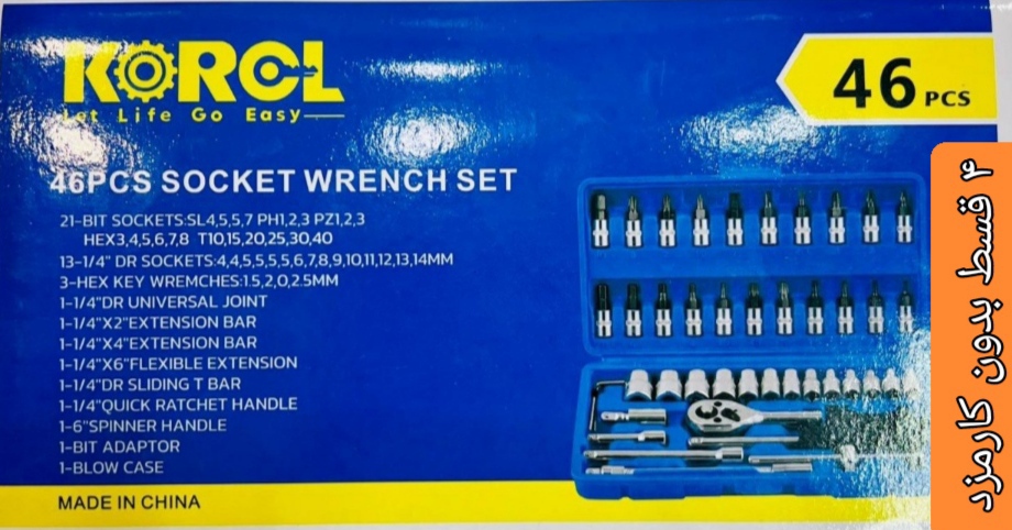 آچار بکس 46 عددی مدل PCS.46 (رنگبندی رندوم آبی یا قرمز)