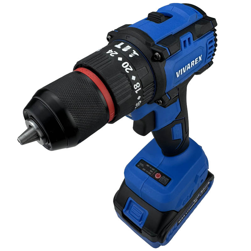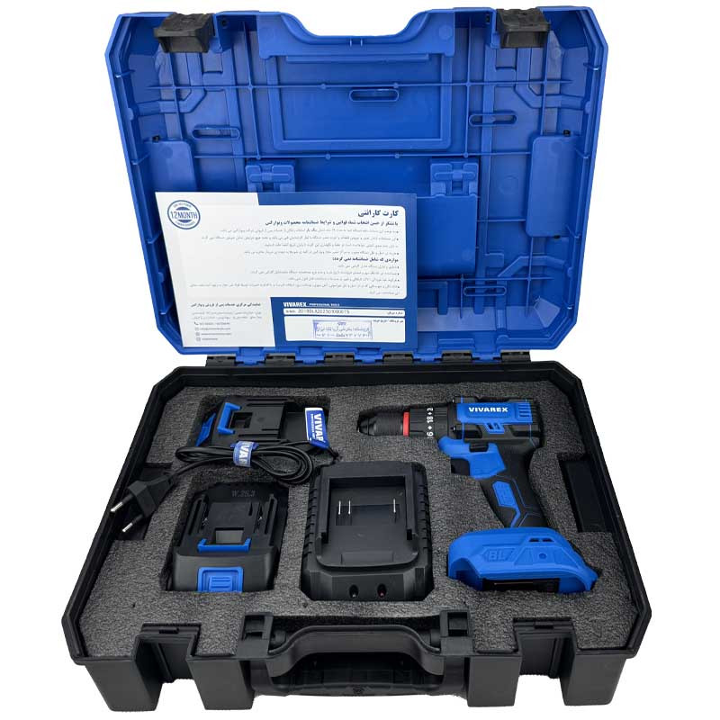 دریل شارژی صنعتی ویوارکس سری جدید VR2010V-IBL دریل شارژی چکشی براشلس 20 ولت حقیقی 2امپر با موتور براشلس صنعتی و باتری های سوپر سایز مکعبی . دارای کلید گازی نمایشگر مقدار شارژ باقیمانده 2عدد باتری سوپر شارژر لیتیومی شارژر بزرگ حرفه ای مدل فست شارژ دارای 3حالت چکشی/پیچ بند/دریل/ چراغ قوه مستقیم روی کار/ سه نظام اتومات صنعتی فلزی/ چپگرد راستگرد دور تند و کند ترکمتر تنظیم قدرت جعبه سایز بزرگ ضد ضربه bmc می باشد.